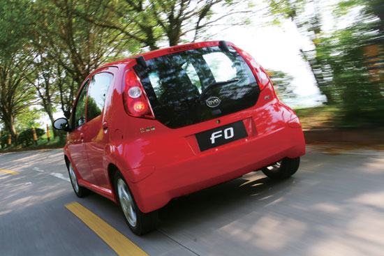 此次在深圳的试驾恰逢两次连续的降雨过程之间,艳阳高照的天气加上午后持续近40°C的高温,对参加试车人们的身体提出了相当高的挑战,而手里的F0同样也在经受着近乎极限的挑战。对于一款排量仅为1.0L的三缸发动机,如此高的温度、大负荷的驾驶,再加上长时间开启空调,在开始驾驶比亚迪F0之前我们多少还是有些疑虑的。启动发动机之后,比亚迪F0并没有出现三缸发动机常见的抖动,原地踩下离合器拨动变速器,给人的总体印象是相当轻便的,与其微型家庭用车的定位非常相符,我们的试驾也在这种轻松的感觉中开始了。行驶在拥挤的深圳市区,短小的车头、宽大的车窗、轻便的操控,F0给我们的第一印象是一辆非常好开的小车。穿梭在复杂的车流当中,该车显得相当灵活。在带动空调的情况下,这款1.0L发动机动力性能还是比较理想的,从起步到转速超过3500r/min,提速感觉能够满足都市生活的需求。此外,比亚迪F0的转向系统表现得相当轻柔,无疑会减少城市驾驶的负担,但是路面的回馈力有些偏小,转向系统的回正力并不算理想。好在该车所装备的5挡手动变速器操作起来同样相当轻便,无论是挡位的清晰度还是入位的顺畅性均可以称得上是同类车型的佼佼者。