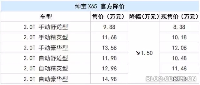 绅宝X65于今年3月21日正式上市,新车定位于紧凑型SUV。动力系统方面,新车搭载的是2.0T涡轮增压发动机,其最大输出功率177马力,峰值扭矩240牛·米,传动系统与发动机匹配的是5速手动或6速手自一体变速箱。