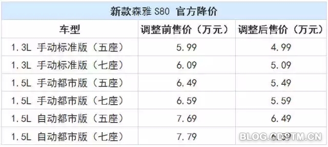 此次官方降价的一汽吉林新款森雅S80也是纯粹的官方直接降价。动力系统方面,新车搭载的是1.3L或1.5L发动机,1.3L发动机最大输出功率为88马力,峰值扭矩120牛·米。1.5L发动机最大输出功率109马力,峰值扭矩为141牛·米。传动系统与发动机配备的是5速手动或4速自动变速箱。