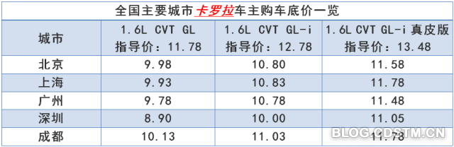 【底价购车】全国主要城市卡罗拉车主购车底价一览