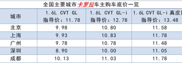 【底价购车】全国主要城市卡罗拉车主购车底价一览