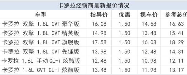 从上表中可以看出,经销商的普遍优惠幅度都在1.5万-1.8万元之间,个别经销商在促销季能达到2万元以上。如果消费者需要赠送一些装饰,优惠幅度响应地会减少。也正应为各地市场卡罗拉的优惠幅度差别不大,因此不值得异地购车。