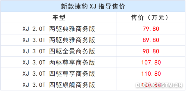 2015-12-09 11:38:11日前,我们从捷豹官网获悉,在广州车展上亮相的新款XJ已经公布了售价,新车共推出六款车型,售价区间为79.80万-120.80万元,详细售价请见下表: