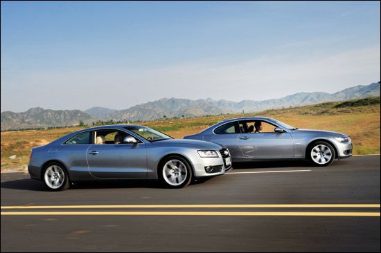 2009-11-21 00:14:11我们需要把它们两个进行比较吗?不,我们之所以把它们并排摆在一起,只因为它们是同类,轿跑车或者称之为Coupe,仅此而已。需要承认,我本身是个忠实的“宝密”,总是疯狂地喜欢一些印有BMW字样的东西,所以我决定还是先来撰写关于A5的评测,以便让我的客观性延续下去。