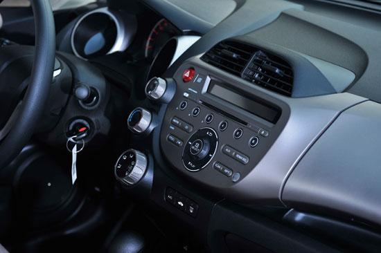 而在内饰设计上,新飞度变得更加活泼。方向盘采用了和CIVIC同样的模式,镂空的黑色网状装饰带来了无比的活力。立体式的仪表造型+拉丝面板的设计也一改小型车单调的印象。最为特别的还在于中控台的设计,一体化的CD面板上集成了AUX接口,其他各个按键功能清晰可见,空调控制旋钮则像三连星般点缀在旁边,这样的设计明显比其他车古板的造型更能够吸引年轻人的眼球。不过如果你选择的是1.3L的车型,只能得到漂亮的空调旋钮和一台不具备AUX接入功能的单碟CD了。