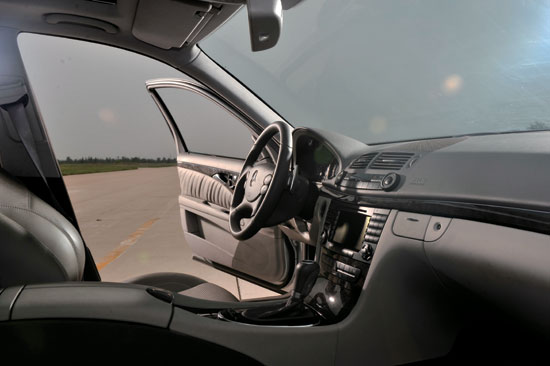 当然还有方向盘,满足人体运动工程学已经是最低的要求,其后的两个铝质换挡拨片才是精华所在。AMG为E63换装SPEEDSHIFT7G-Tronic7挡自动变速器,有了拨片,我们不用在高速行驶中单手把定方向盘,这样的举动确实令人身心紧张,而且奔驰左右加减挡挡把模式也着实令人不适。