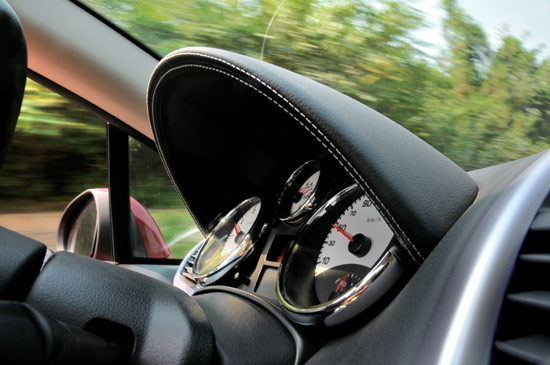 敞篷车型最美妙的时候莫过于驾车穿梭于林荫大道之上,你可以贪婪地享用最清新的空气和最和煦的阳光,开篷之后车内的噪声确实有所增加,但在即使在100km/h的车速下,降下所有的车窗,车内的两人仍旧可以自由地交谈,而升起全部车窗后噪声能够得到更好的抑制。