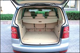 途安的行李厢空间和后排座椅布局的多样性从上市之初即得到了消费者的肯定和追捧,新途安完全继承了这方面的优势,带有滑轨的后排座椅可以前后移动,用以获得最舒适的后排乘坐空间。3个独立座椅可以向前翻起或是放倒靠背,最大储物空间可以达到1 900 L,在正常状态下也有620 L。近似于矩形的行李厢门和平坦的行李厢地板,对于大屏幕电视这样的“特殊”物品也不在话下。