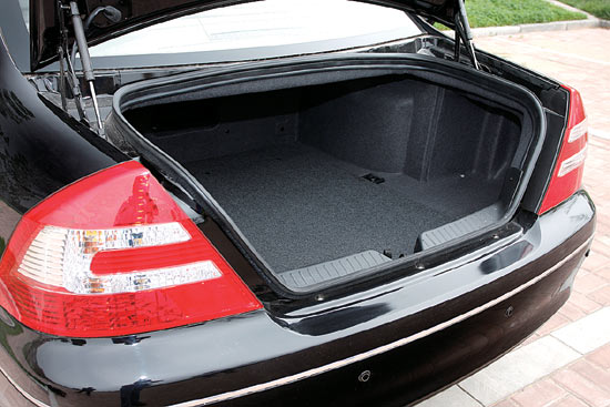真皮质地的美国江森座椅柔软舒适,驾驶席可以手动八方向调节,侧向支撑力也不错。前排座椅的四向可调头枕,在这个价位上绝对属于稀罕配置。拥有了2 790 mm的超长轴距,宾悦前后排乘坐空间自然不成问题,这也是宾悦中高级轿车定位的一个体现,后排设计更是照顾到成员的身份,头部与腿部空间大得有点“无私”,甚至可以体验不同的舒适姿态。虽然集众家之长的宾悦具有很多同价位车型无法比拟的优势,但是作为一款定位于中高级轿车的车型来说,还是有些不足之处。带有杯架的后排中央扶手设计略显简单,后排头枕也是不可调的,也许是过于注重自己的“高贵”身份,宾悦的后排座椅无法向前放倒,局限住了家用对于行李厢空间的需要,多少有些令人遗憾。