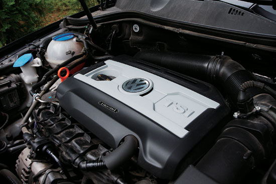 迈腾所搭载的2.0TSI发动机由大众一汽发动机(大连)有限公司生产,是继2007年1.8TSI发动机在中国大连全球首发后,大众汽车集团向中国引进的又一款全球同步生产的发动机产品,属于大众汽车集团最新研发的EA888系列。在“高动力输出、低燃油消耗”的技术发展方向和目标指引下,涡轮增压技术与汽油缸内直喷相结合,为2.0L的排量套上了一个硕大的光环。燃油缸内直喷技术将精确计算的燃油直接喷入燃烧室与空气混合燃烧。优化了进气混合效率,使燃烧更加充分,燃烧效率更高,在涡轮增压技术配合下,发动机动力更强,动力响应更快,而油耗和排放却更低。1800~5000r/min时这台国产2.0TSI发动机可持续输出280N·m的最大扭矩,与EOS搭载的原装2.0TSI发动机相同。在5000~6000r/min可提供147kW的最大功率,令车辆保持优异的高速性能,这样的成绩是一些2.8L自然吸气式发动机也无法达到的。虽然这一切无法用肉眼看到,但是驾驶时的动力感觉还是很直观的,E-Gas电子油门技术将驾驶者的意图精确地传达给发动机,精确计算过的燃油转化成为强劲的动力爆发,推背感随着油门深度的增加而更加强烈。
