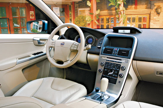 在内饰设计上,XC60将自身的豪华档次与舒适有机地结合在了一起,SUV的狂野劲几乎荡然无存。纯粹的北欧血统营造出的内部空间,给亚洲人相对娇小的体型带来了不少实惠,前后排都拥有奢侈的头部空间,虽然后排乘客的腿部空间并没有像大气的外形那样豪爽,但是前排座椅靠背的凹陷式设计对于XC60紧凑型SUV的定位来说足够了。超越时尚潮流的悬浮式中控台布局很简洁,功能键标示清晰,虽然多功能方向盘上已经集中了常用功能的按键,但是中控面板仍然略微向驾驶员方向倾斜,更加便于驾驶时的操作。全景天窗采用了层压式玻璃,不但确保了良好的车内采光效果,也进一步提高了防范非法侵入和发生翻滚时的安全特性。中间扶手箱中的USB接口支持iPod、iPhone这样的时尚装备,扶手箱后端设置了耳机插孔和音响调节装置,大量的先进技术会使XC60的日常驾驶变得更加具有趣味性,所以如果你不够“in”的话,很难体会到XC60的乐趣所在。