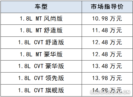 MT市场指导价:11.48万元;CVT市场指导价:12.48万元