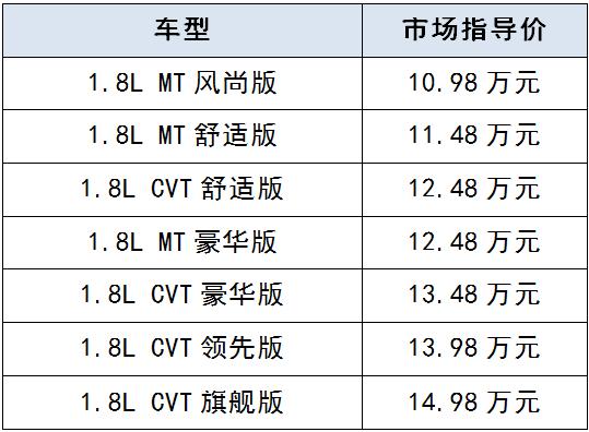MT市场指导价:12.48万元;CVT市场指导价:13.48万元