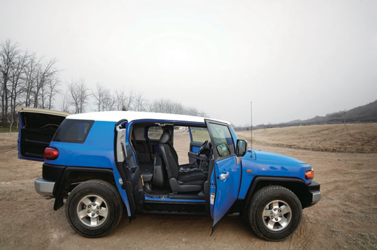 FJ酷路泽无疑是真正意义上的越野王者,其无论在刚硬造型或是越野性能上,均采用最优化的设计,一脉相承了前辈FJ40的精神特质,刚硬有力、粗旷不羁、经久耐用及简约大气。而且FJ酷路泽的设计制造,无论从安全、舒适、动力、经济性及排量上,都是严格按照丰田汽车纵横全球的标准而进行,在它的焊接钢板车身下,采用了非常坚固且经过严格测试的阶梯式车架,以厢式钢梁为原材料,更采用与Land Cruiser120一样的前后悬架系统,前轴采用双叉臂式独立悬架,后轴则采用四连杆机构式悬架系统,从而极大地增强了越野敏捷度。