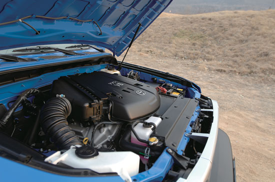 FJ酷路泽的4.0L、24气门、顶置双凸轮轴DOHC发动机,再加上丰田独步全球的VVT-i技术,不仅创造了376N•m(3 800r/min)的超强扭矩,更有效兼顾了燃油经济性。5挡自动变速器还配备了防滑中央差速器,通常状况下,将发动机动力以40/60的比例分配给前后车轴,根据方向盘转角和车轮打滑的程度,防滑中央差速器将会自动将这个数字在一定范围内调整。中央差速器锁定时,动力便均匀地分配给各个车轮,同时自动变速器中还配有一个分动器。