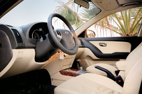 除了灵动的外形特征,伊兰特悦动也考虑了商用车的范畴,最为明显的特征就是加大了整车的尺寸,长宽高乃至轴距可以用超大规格来形容,可以说满足家用的同时,也达到了商务车型的标准,当之无愧地成为了同级别车中乘坐空间最大的车型。但是在内饰上并没有太多的商务感觉,上下双色纹路面板过渡自然、简单明快,较上一代伊兰特有了很大的进步,但要用于商务似乎太简洁了些,像按键的集中布置,蓝色的背光显示屏,也都是家用轿车上比较常用的模式。唯一体现了一些商务特征要属桃木的装饰面板,但是用料比较有限,只能起到一定的装饰作用。