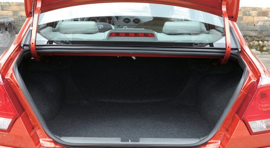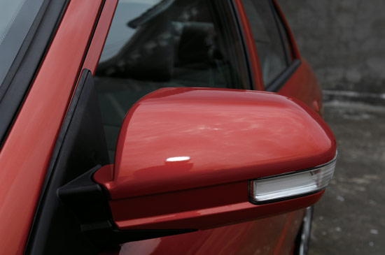 我更欣赏V3菱悦的尾部设计,虽然是在蓝瑟的尾灯上进行的改动,但却改造得非常成功。灯组向内延伸,行李厢门也向内收缩,突出了后部的两条棱线,看上去动感十足,略有英菲尼迪的风范。总之,尾部看起来很精神,让家庭车的特征变得大气了许多。再有,带LED转向灯的电动后视镜也提升了V3菱悦的优雅。