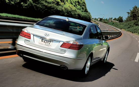 坐在劳恩斯厚实而舒适的真皮座椅上,你可以享受到豪华车中的一切,但是3.8L的超强动力已经让我无暇顾及车内的豪华和济州的风景。汉拿山蜿蜒的山路并不能让动力百分百发挥,油门踩到底的片刻,瞬间又被一个个弯道制止,但是顺畅的快速反应却实现了完美的提速,6挡自动变速器配合得很默契,总之,你不用为这款豪华车的动力性担心。劳恩斯的前后悬架这时得到了发挥的机会,车身在转弯和制动时的稳定性出乎我的预料,后驱明显提高了转向的精度,车身在手中的把握显得很轻便,寻迹性异常的好,完全有别于以往韩系车带给我们的印象,这主要是悬架的功劳。急弯的过程中车身摆动也很轻微,看来钢体的强度也有了很大提升,80km/h的速度应付一些急弯让我很有把握,不用担心ESP介入带来的异常反应和车身的过度晃动。当然,车身的稳定状态对于德系的豪华车还有些许差距,但已经和日系的豪华品牌相差无几。