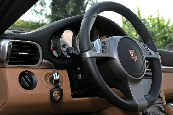 野撒够了,汗出透了,我把新911Targa停到湖边,透过全景的玻璃车顶,映入眼帘的是911精致而奢华的内饰。设计师特别强调了各种颜色的和谐,在两款车型上,换挡杆、方向盘、手刹手柄、中控台储物箱等均采用了真皮装饰,运动型方向盘、仪表组表盘则采用铝面。新911Targa的中控台还进行了优化,并采用PCM保时捷通讯管理系统这一控制概念,新款PCM引入了触摸屏显示器,驾驶者或前排乘客可以从容地在主菜单上找到相应的功能。