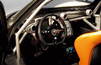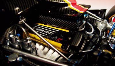 从前些年的马自达787B开始,AA一直不断尝试推出千元以上级别的高端汽车模型。眼前的这辆PAGANI ZONDA R就是AA新近推出的高端汽车模型。高达近2 000元的售价让它成为了AA 1∶18模型中官方售价最高的一款。珍珠白和碳纤搭配的车身体现出了AA车模油漆一向的高水准,车身上下数百处固定零部件的螺栓体现出了高端模型应有的精细质感。