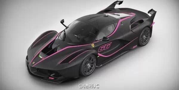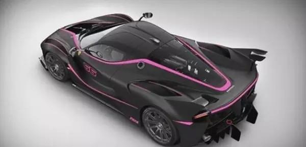 法拉利FXX K一直是赛道上的焦点,在黑色车身上配以粉色点缀,更吸引人眼球。黑色的法拉利FXX K看上去比较凶狠,加入粉色元素之后,这款车看上去更柔和一点。法拉利FXX K是一款完全独立的车型,它并不属于某个系列或是某款车型的延续。