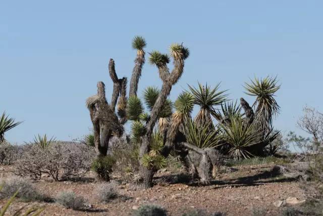 从红岩峡谷出来便来到了约书亚树国家公园,这里是一个奇特的公园里,不仅有巨砾扶壁、岩石山地、淘金遗迹,还有点缀着古怪树木的沙漠平原。约书亚树国家公园的命名来自于约书亚树,一种大型丝兰,同时也是莫哈维沙漠的代表性植物。约书亚树国家公园拥有两大沙漠生态系统,分别是公园东部的科罗拉多沙漠(海拔1000米以下),以及公园西部海拔更高、气候更潮湿的莫哈维沙漠。