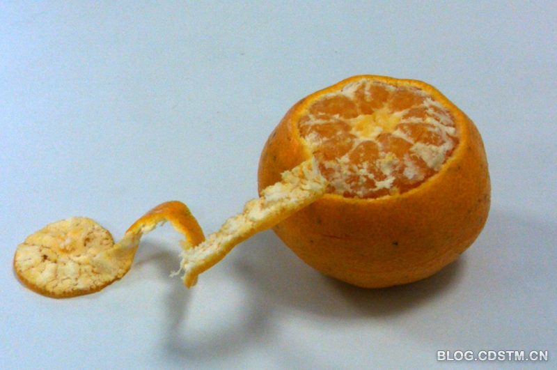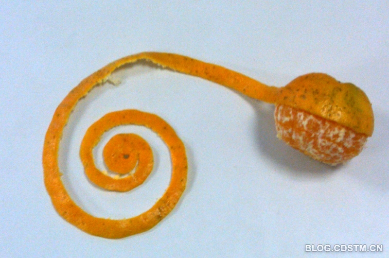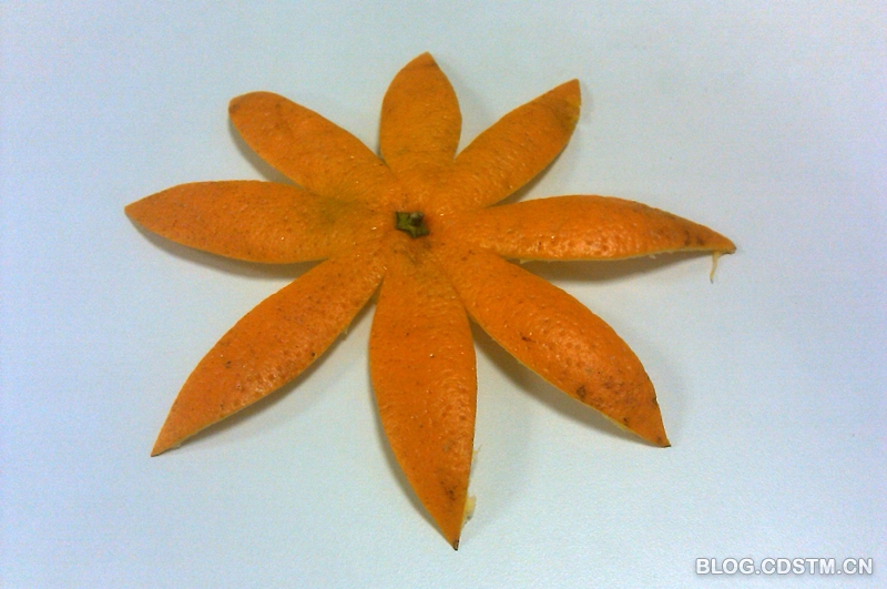 如果将桔子皮像地球仪那样沿经线展开,而且分得均匀,可以得到一朵花。