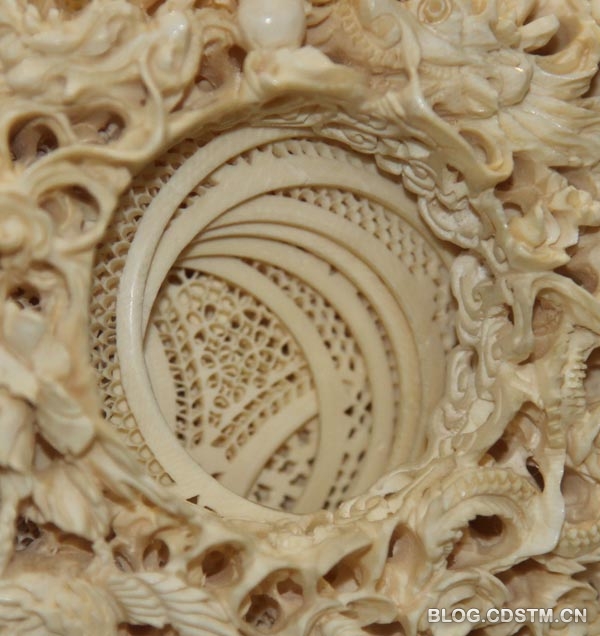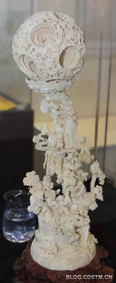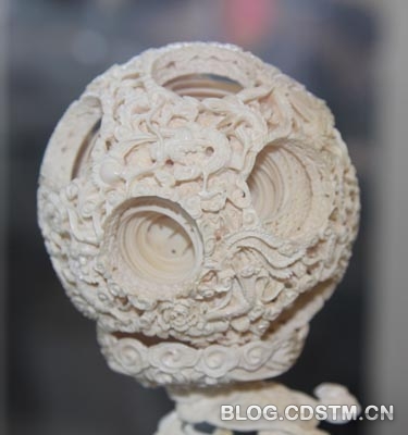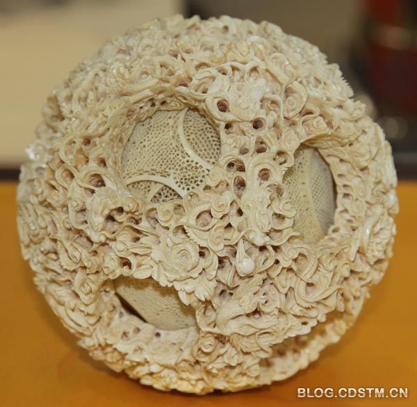 上周在农业展览馆举办的非物质文化遗产展上,我见到了几颗雕刻精美、结构复杂的鬼工球。鬼工球之所以叫鬼工球,是说这种用象牙雕刻的多层球体堪称鬼斧神工。