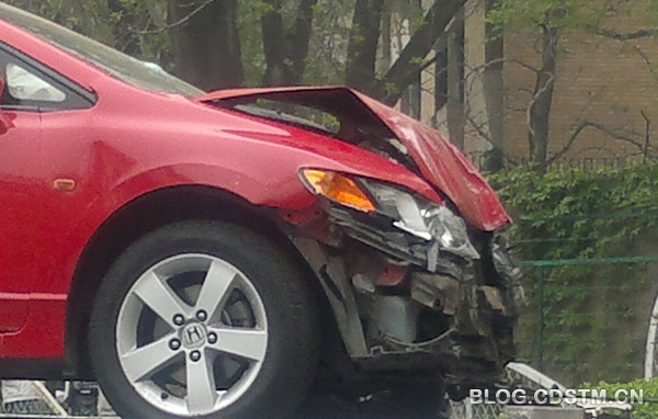 车祸现场,刚拍的。开车的朋友请注意!