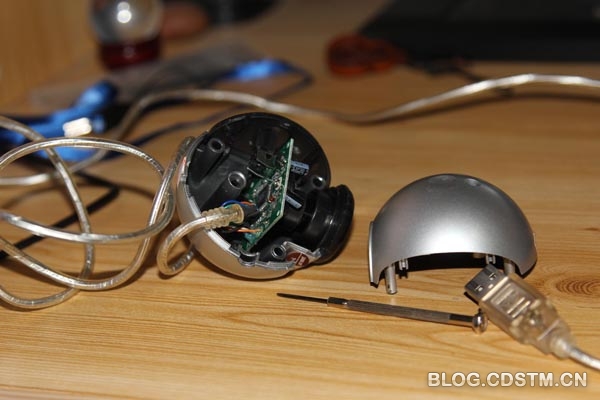 今天我又拆了一个摄像头,是我前几年买的那个,因为驱动与WIN7系统不兼容,所以一直闲置着,上次改装摄像头也没想到用它。今天之所以拆它,是因为我发现前几年的摄像头虽然像素没有现在的高,但是感光元件却比现在的大,而这也是我需要。