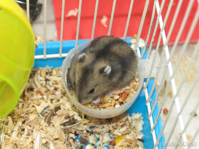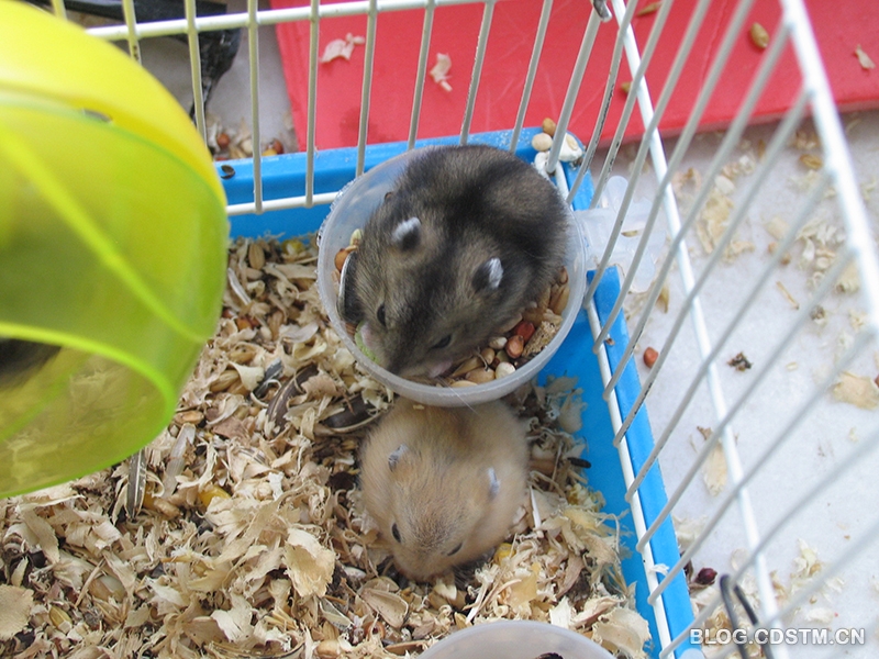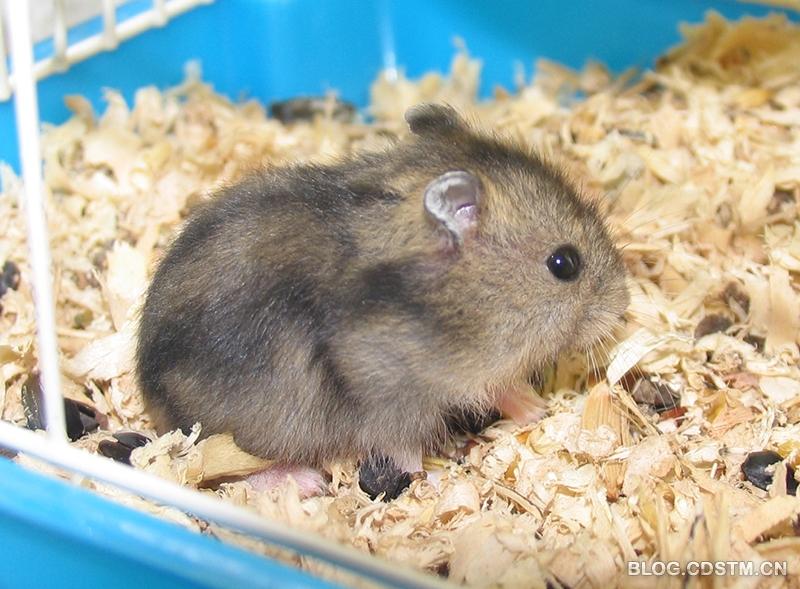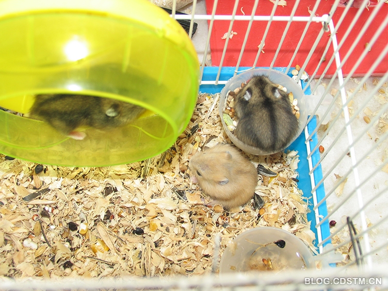 我家的小仓鼠出生才20天,就已经长得有模有样了。现在它们虽然已经能够自己吃鼠粮了,不过还是经常追着妈妈要吃奶。3个小家伙都很活跃,每天晚上一整夜笼子里都有动静,它们已经能把滚筒转的飞快了。