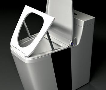 这款马桶是针对腿脚不便的人设计的。它的坐便圈带有一个液压动力杠杆,可以帮助人们站起来。