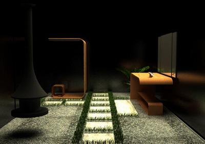 整个卫生间的地面采用瓷砖与鹅卵石相间铺成,石缝中种植绿草,各种台面使用木质材料。置身其中让人感觉与大自然亲密接触,心情格外舒畅。