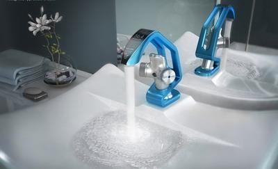 这款水龙头配有红外传感器,并在顶部带有一个液晶小屏幕,可以调节水流量和温度,并能清楚地显示现在和过去的用水量。