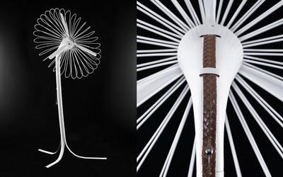 这款花朵形风扇的特别之处在于,不使用时它的头会垂下来,象一朵凋谢的花朵。设计师的意图是提醒人们节约能源,保护环境。