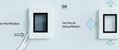 这款空气净化器的形状像一扇窗户,只要室内空气质量达不到要求,它的窗口就会变成黑色。当它开始工作后,随着空气质量的改善,窗口会逐渐恢复透明。