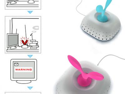 这款空气质量分析器被设计成一棵发芽的小苗,底部的小孔能够对房间中的空气进行采样分析。当它的两片嫩叶变成蓝色时,就表示目前家中的空气质量相当好;当颜色变成粉红色,则表示你需要打开窗户或者打开换气扇。分析器通过计算机的USB口供电,同时它还能通过USB数据线将采集到的数据传送到电脑中保存。