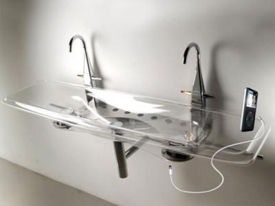 这款脸盆集成了扬声器系统,可与iPod等数字播放器兼容播放音乐,让你边洗脸边欣赏音乐。