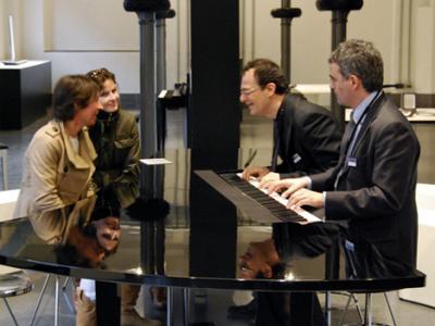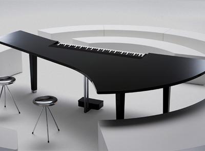 设计师将钢琴和桌子巧妙地融为一体,方便演奏者与观众近距离交流。这种演奏模式更像是亲朋好友间的小聚,给人以一种随意、轻松的感觉。
