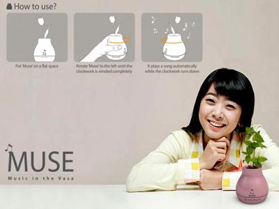 这是一款会唱歌的花瓶,造型简洁时尚。它的用法很简单,向左旋紧发条,悠扬的音乐便会慢慢响起。