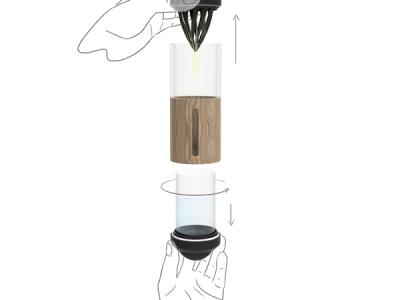 这是一款简易的无土栽培装置,采用水培方式,并通过底部的橡皮泵进行氧气的补充和更新。它无需通电,你只需每天在底部按上几次,就能把氧气补充到培养液中。通过底部一个简单的阀门系统,你还可以调节换氧速度和进氧量。