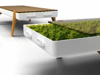 这款长椅的特别之处在于,椅子脚由植物盆栽来充当。在室内放置这样一条长椅,既美化环境又净化空气。