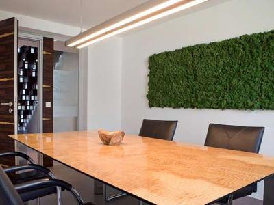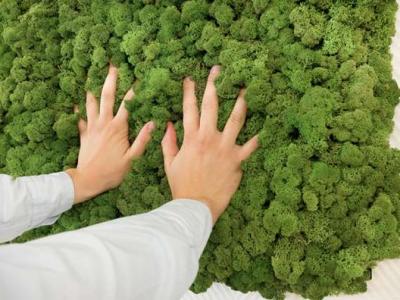 这面壁毯采用模块化设计,可根据室内墙面的大小定制。栽种上植物的壁毯厚度约