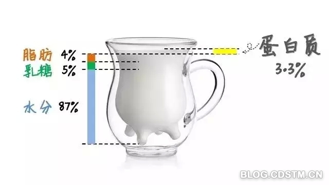 100克全脂牛奶中,含有大约3%的蛋白质,4%的脂肪,以及5%左右的碳水化合物。除此之外,100克的牛奶中还含有110毫克(1%)的钙质。