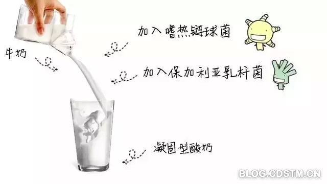 牛奶经过嗜热链球菌和保加利亚乳杆菌这两种乳酸菌的发酵,让其中的一种名为酪蛋白的蛋白质互相交联成网状,网罗住了牛奶里的其他物质,从而形成了一种像嫩豆腐一样的质地,这就是凝固型酸奶。