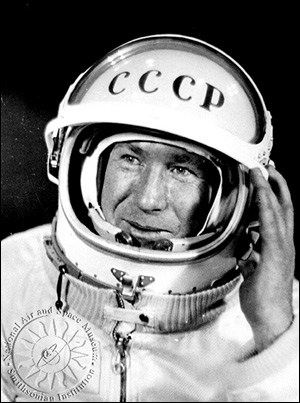 1965年3月18日,前苏联航天员列昂诺夫在“上升2号”飞船上身着特制航天服和安全带,进入了太空,自由飘浮12分钟,完成了人类历史上第一次系着安全带的太空行走。