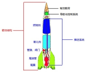 增加火箭的有效载荷运载能力,最行之有效的方式就是多级火箭设计。我们先来了解一下火箭的构成:箭体结构、燃料贮箱、发动机、气瓶、管路、阀门、电源系统及制导与控制系统等,最上面的整流罩内安装有效载荷。