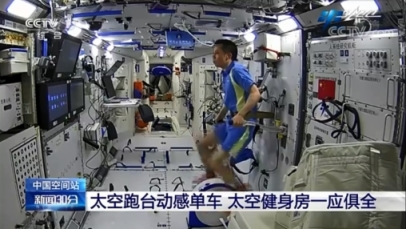 在轨锻炼也是防止钙流失和肌肉萎缩的方法(图源:CCTV)