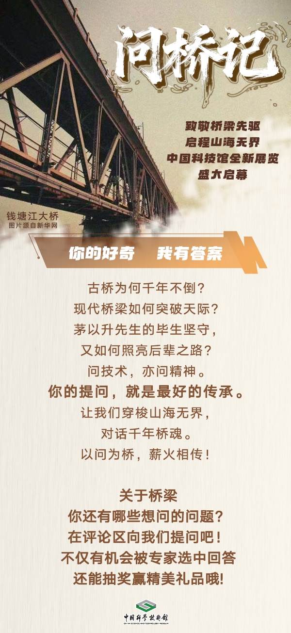 本期「万能哒」《问桥记》正式启动,联动“中国古今桥梁科技文化展”,诚邀您参与「你问我桥」全民问答计划!