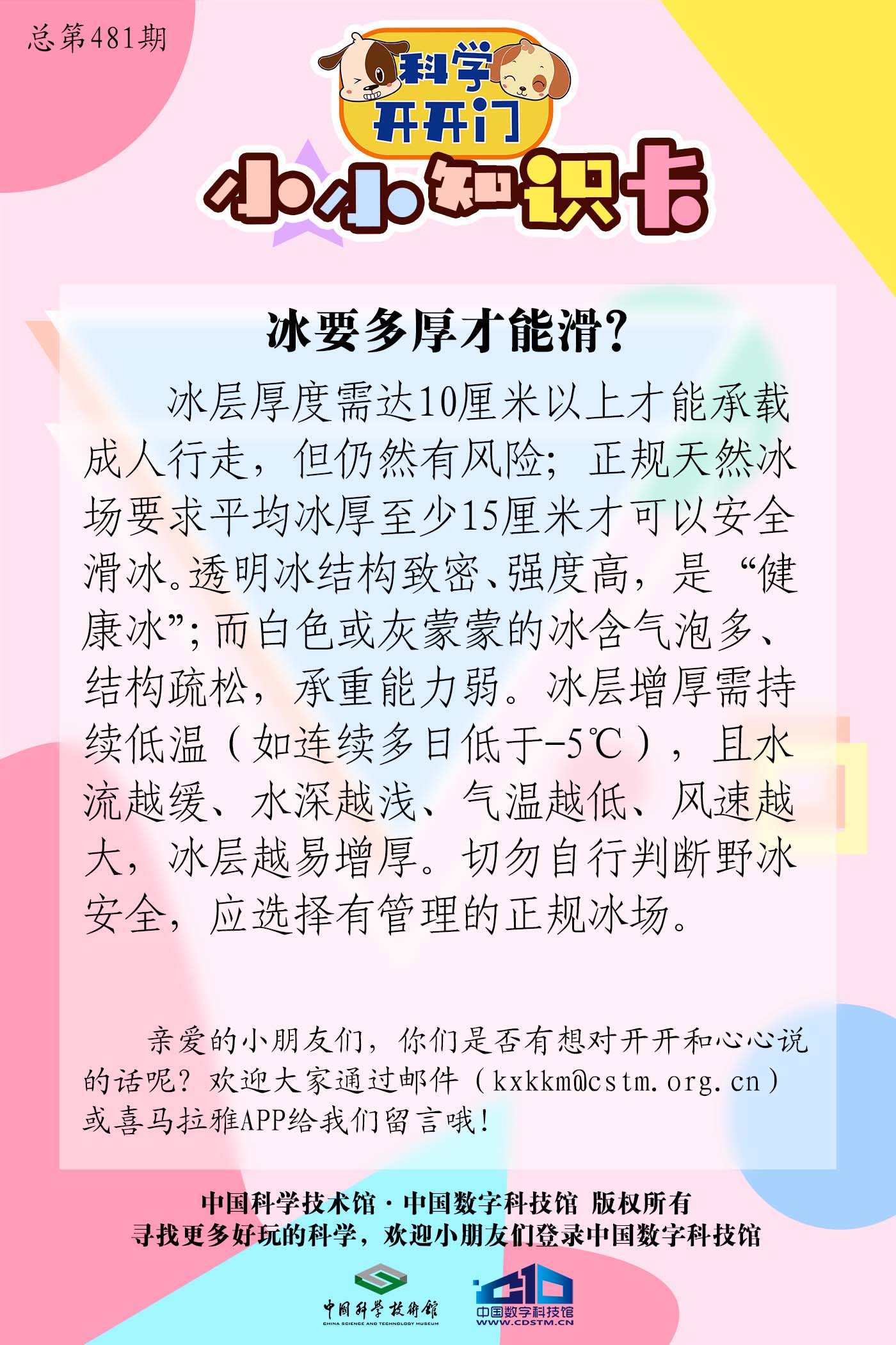 小朋友们,隆冬时节,多厚的冰面可以滑冰呢?快来听本期科学故事寻找答案吧!